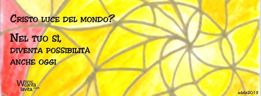 • o ritagliata dal formato poster, in piccoli frammenti da distribuire ai ragazzi. Su ogni frammento ognuno metterà il suo nome, perchè è mettendosi in gioco con e per Dio che si potrà portare luce e portare lui al centro del mondo.