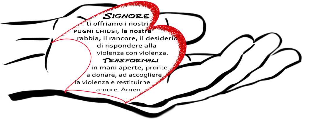 A questo punto i ragazzi dovrebbero essere pronti a vivere il segno proposto nell’articolo di dicembre: consegnare i loro “pugni chiusi”, simbolo della rabbia, della violenza, della negatività, a Dio perché possa trasformarli in “mani tese”, aperte, pronte a donare, ad accogliere la violenza ricevuta per restituirne amore.