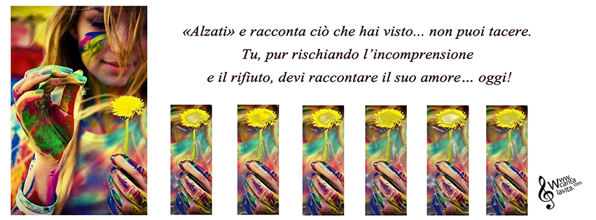 di noi. «Alzati!», ci dice «e racconta ciò che hai visto. Perché se tu hai davvero visto, se la tua vita ha davvero incontrato Dio, parola viva, allora non puoi tacere. Tu, pur rischiando l’incomprensione e il rifiuto, devi raccontare il suo amore… oggi!».