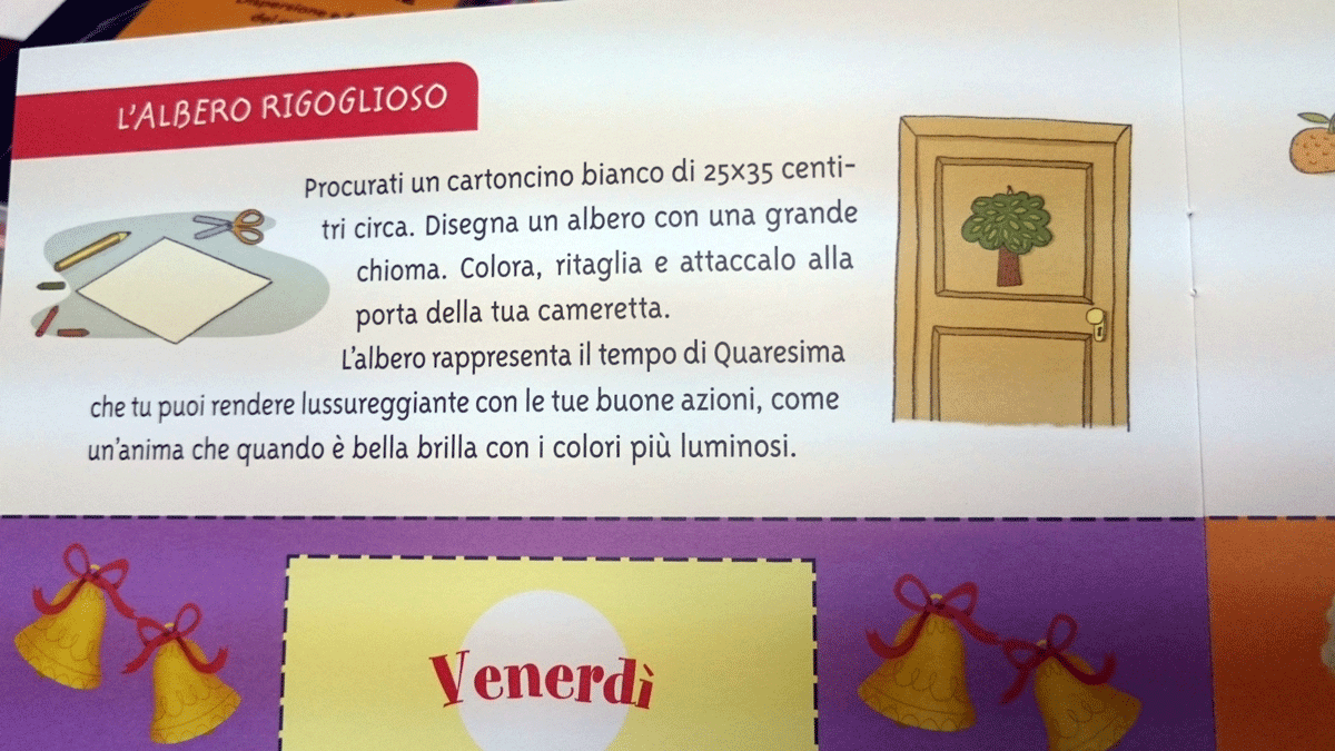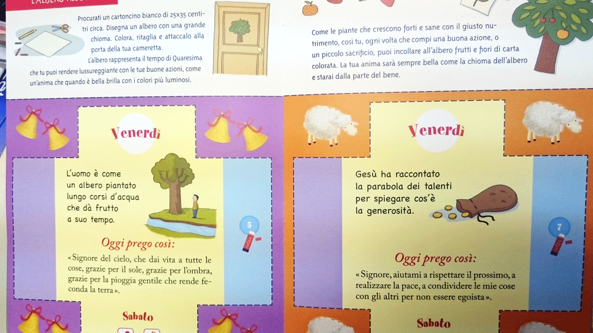 Il bambino sarà invitato a compiere gesti d’amore, piccole rinunce o brevi preghiere; scoprirà la gioia dell’attesa e si avvicinerà con più consapevolezza alla Pasqua.