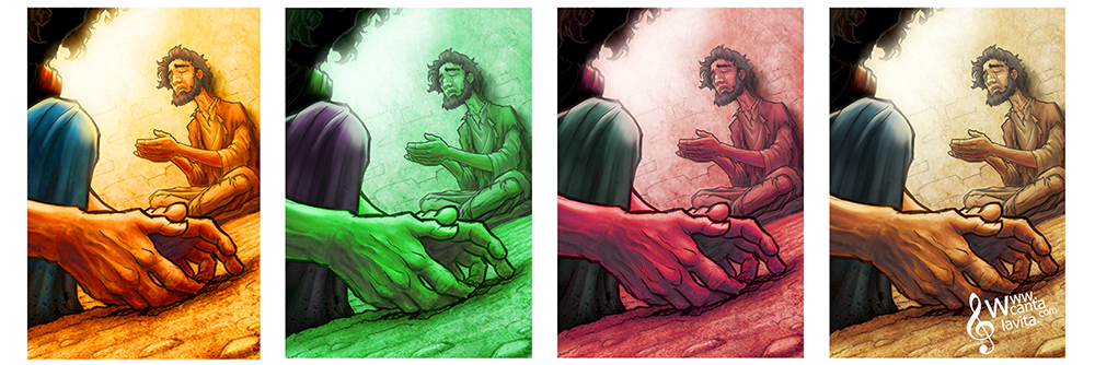 In quel tempo, Gesù passando vide un uomo cieco dalla nascita; sputò per terra, fece del fango con la saliva, spalmò il fango sugli occhi del cieco e gli disse: «Va’ a lavarti nella piscina di Sìloe», che significa “Inviato”. Quegli andò, si lavò e tornò che ci vedeva. Allora i vicini e quelli che lo avevano visto prima, perché era un mendicante, dicevano: «Non è lui quello che stava seduto a chiedere l’elemosina?». Alcuni dicevano: «È lui»; altri dicevano: «No, ma è uno che gli assomiglia». Ed egli diceva: «Sono io!».