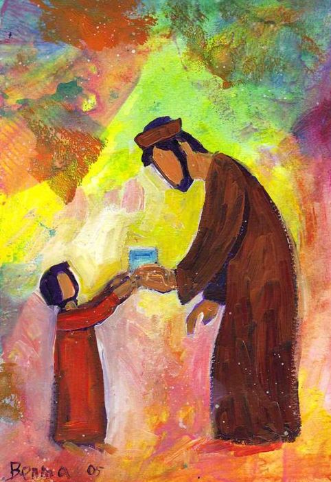 Tutti i bambini insieme: Signore Gesù, insegnaci a condividere tutto per amore: un pezzo di pane, un bicchiere d’acqua, un gioco, un quaderno, la nostra amicizia. Spalanca il nostro cuore perché possiamo accogliere tutti come fratelli e sorelle, imparando da te che, per noi, hai dato tutto. Amen.