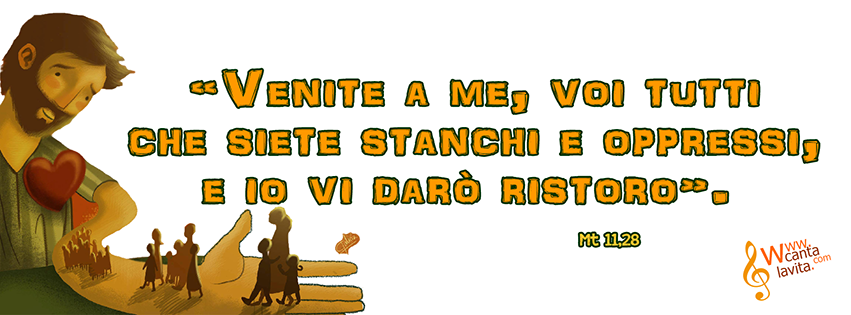 Venite a me, voi tutti che siete stanchi e oppressi, e io vi darò ristoro. Prendete il mio giogo sopra di voi e imparate da me, che sono mite e umile di cuore, e troverete ristoro per la vostra vita. Il mio giogo infatti è dolce e il mio peso leggero».