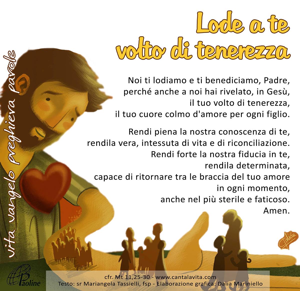 Signore Gesù, ti preghiamo per tutti noi, piccoli e grandi. Ogni giorno ci chiami a venire a te, per imparare da te a vivere per amore. Insegnaci a non scappare lontano da te. Noi ti preghiamo. Rit.