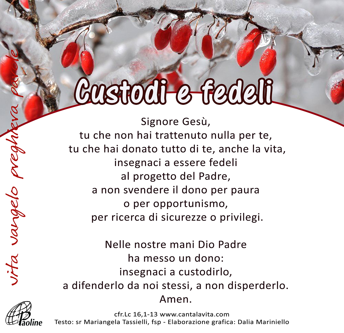 «Un uomo ricco aveva un amministratore, e questi fu accusato dinanzi a lui di sperperare i suoi averi. Lo chiamò e gli disse: “Che cosa sento dire di te? Rendi conto della tua amministrazione, perché non potrai più amministrare”.