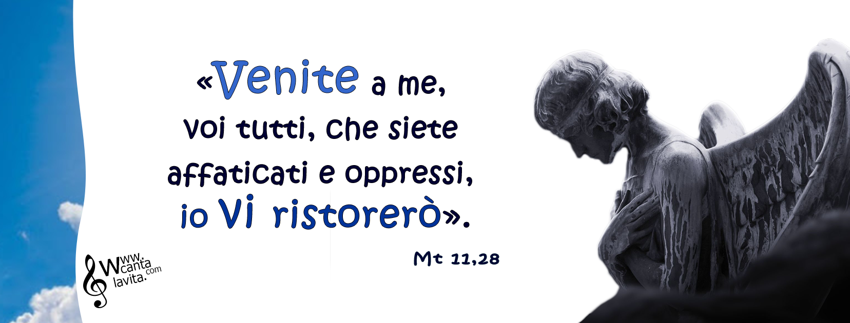 Venite a me, voi tutti, che siete affaticati e oppressi, e io vi ristorerò. Prendete il mio giogo sopra di voi e imparate da me, che sono mite e umile di cuore, e troverete ristoro per le vostre anime. Il mio giogo infatti è dolce e il mio carico leggero».