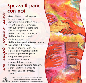 Perché oggi, non rimettiamo al centro il Suo amore, inventandoci un concreto atto di amore? E dopo, solo dopo averlo compiuto, raduniamoci e spezziamo il pane, benedicendolo e distribuendolo tra noi. Raccontiamo ai più piccoli il perché di questo gesto. Proviamo a ricordare una carezza ricevuta nella vita da parte di Dio e raccontiamola agli altri… sarà un gesto memoriale…