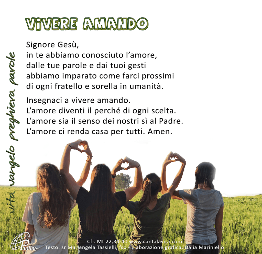 Amare. È il più grande e il primo dei comandamenti della nostra fede, e Gesù di Nazareth, con i suoi gesti e con le sue parole, con la sua vita e con la sua morte ci ha svelato il modo di comprenderlo e di viverlo.