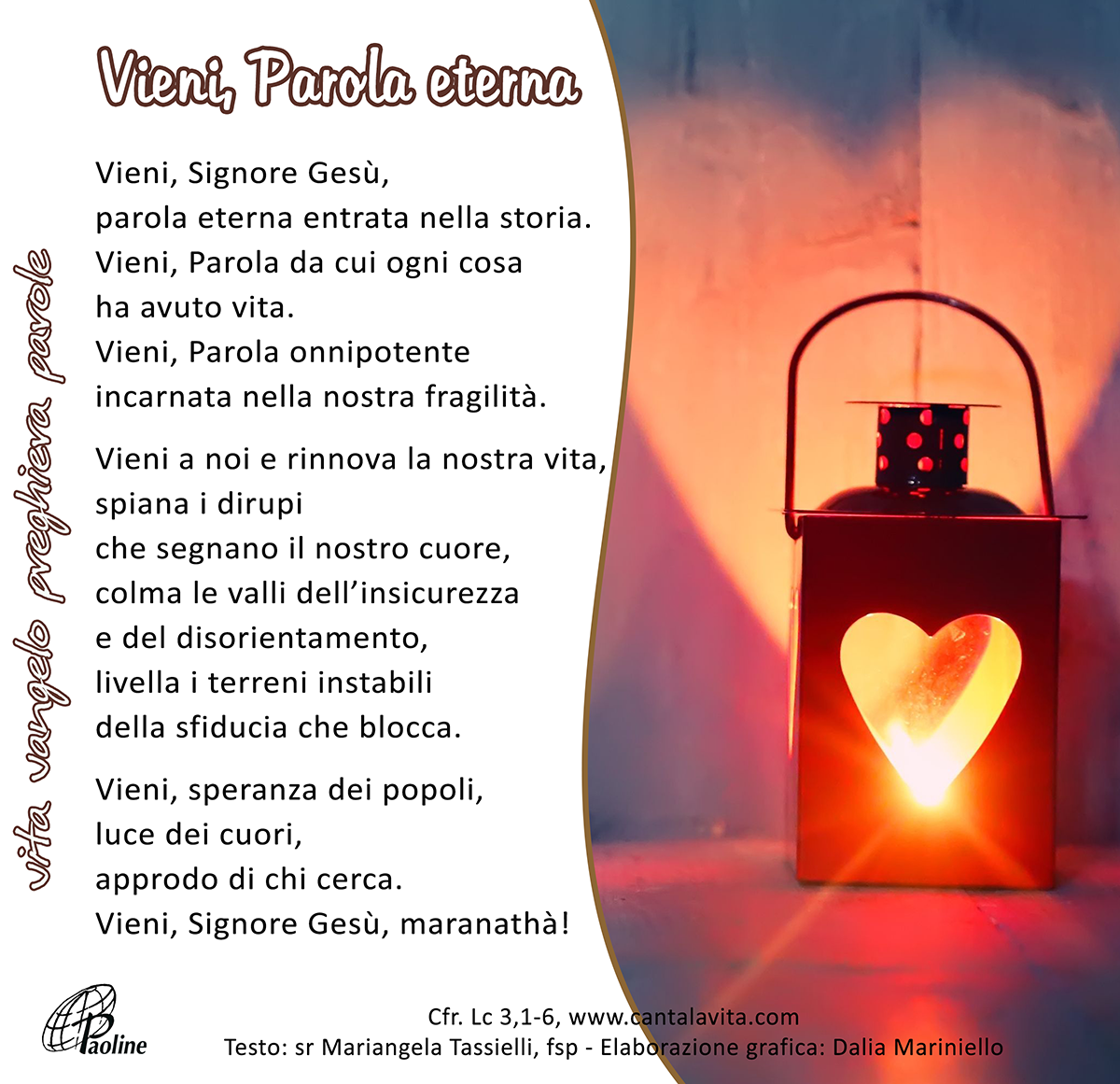 La Parola continua a venire, continua a darsi, continua a farsi storia, e noi possiamo diventare, anche oggi, voce che instancabilmente fa risuonare nel mondo l’agire di Dio, il compiersi silenzioso delle sue promesse, la sua presenza che dà vita a ogni storia.