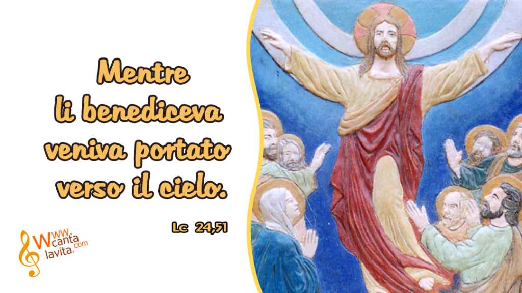 Poi li condusse fuori verso Betània e, alzate le mani, li benedisse. Mentre li benediceva, si staccò da loro e veniva portato su, in cielo. Ed essi si prostrarono davanti a lui; poi tornarono a Gerusalemme con grande gioia e stavano sempre nel tempio lodando Dio.