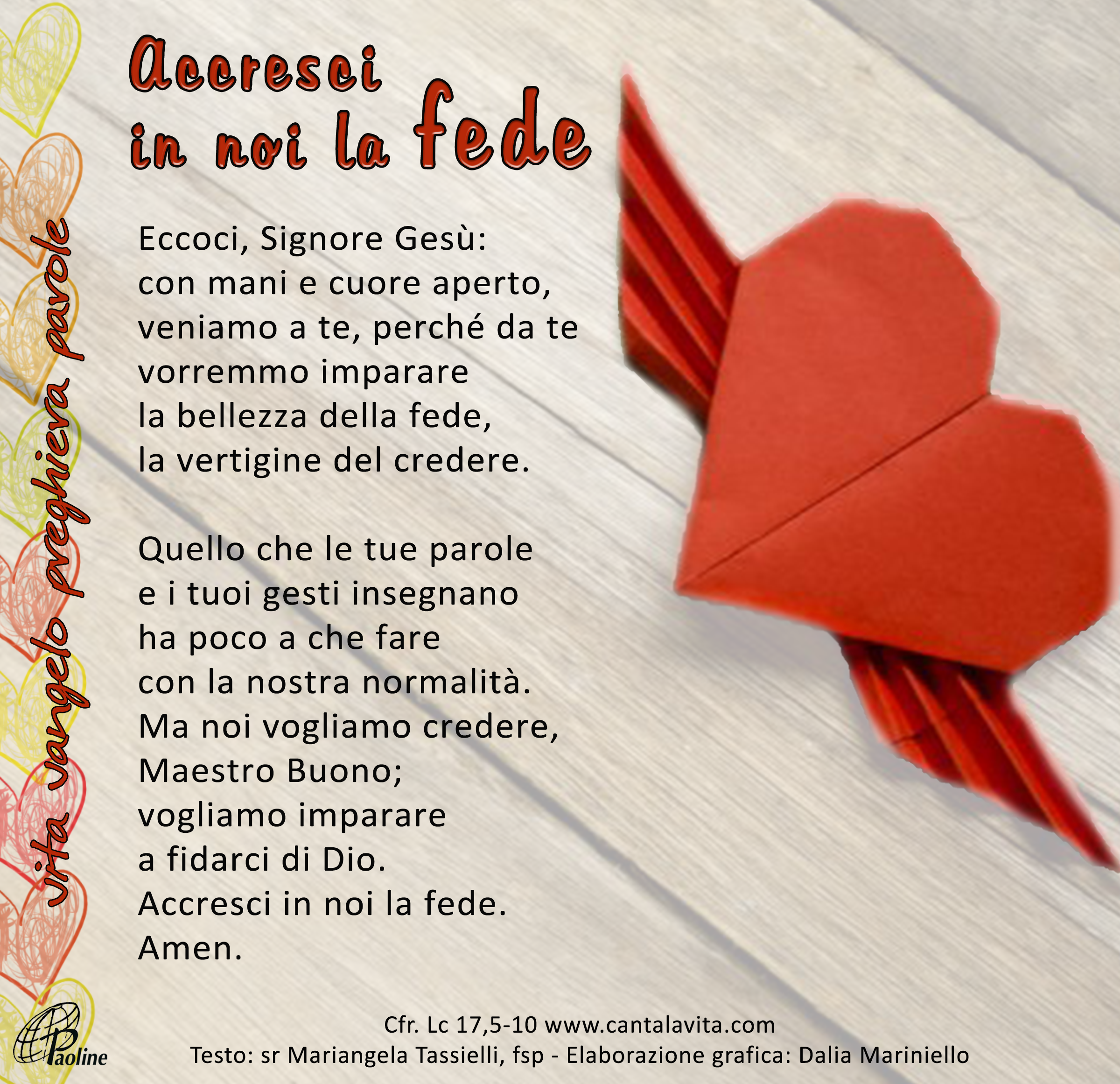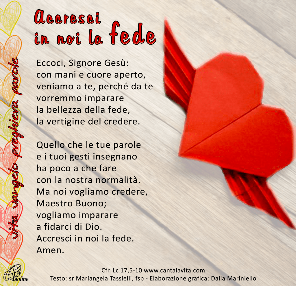 Chiediamolo, le une, gli uni per le altre, per gli altri: “Accresci in noi la fede, Signore. Insegnaci a perderci nella bellezza di una relazione normale con te”.