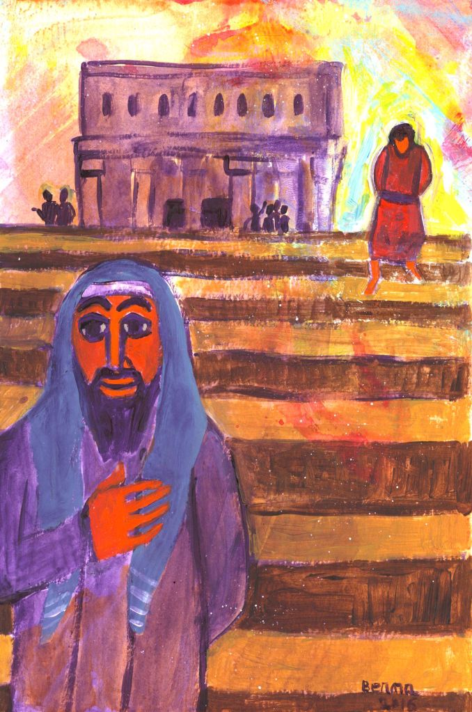 Il pubblicano invece, fermatosi a distanza, non osava nemmeno alzare gli occhi al cielo, ma si batteva il petto dicendo: “O Dio, abbi pietà di me peccatore”.