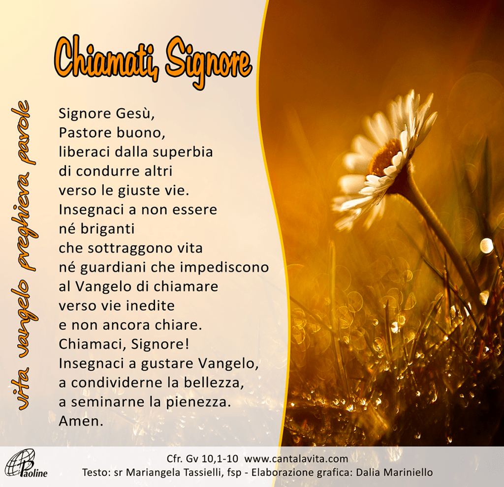 In quel tempo, Gesù disse: «In verità, in verità io vi dico: chi non entra nel recinto delle pecore dalla porta, ma vi sale da un’altra parte, è un ladro e un brigante. Chi invece entra dalla porta, è pastore delle pecore.