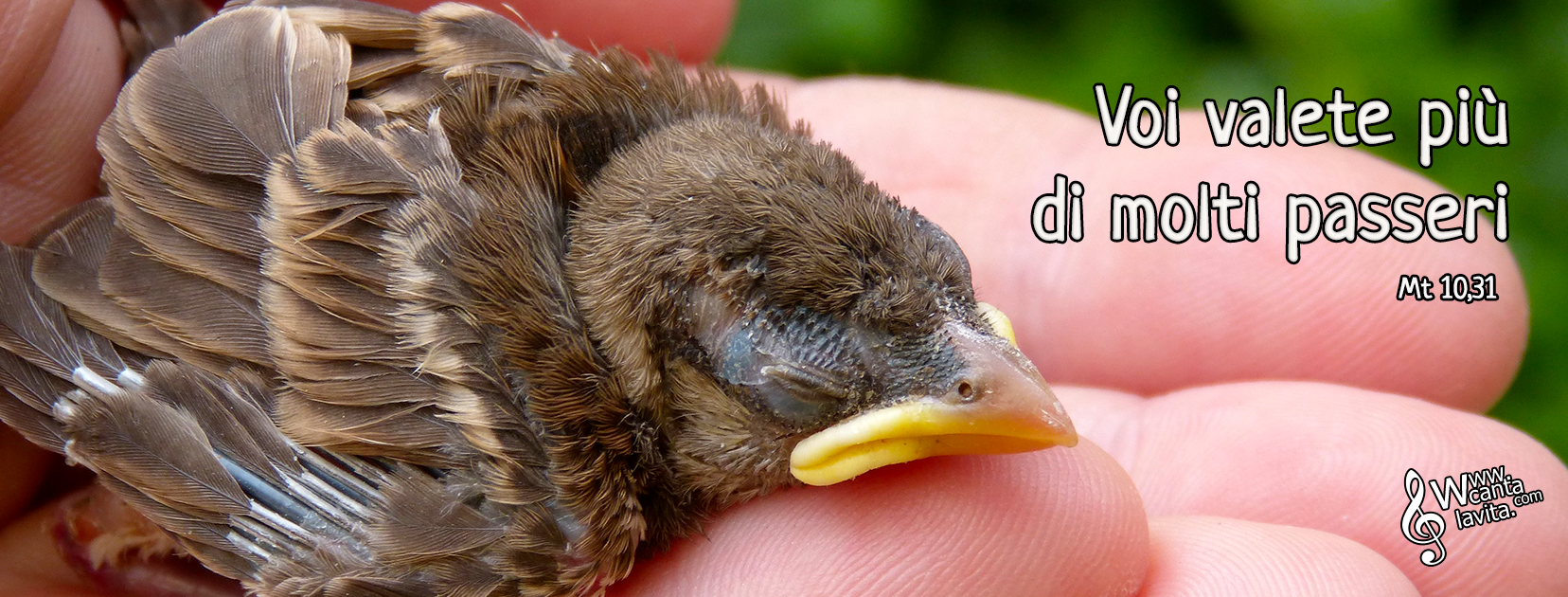 Due passeri non si vendono forse per un soldo? Eppure nemmeno uno di essi cadrà a terra senza il volere del Padre vostro. Perfino i capelli del vostro capo sono tutti contati. Non abbiate dunque paura: voi valete più di molti passeri!