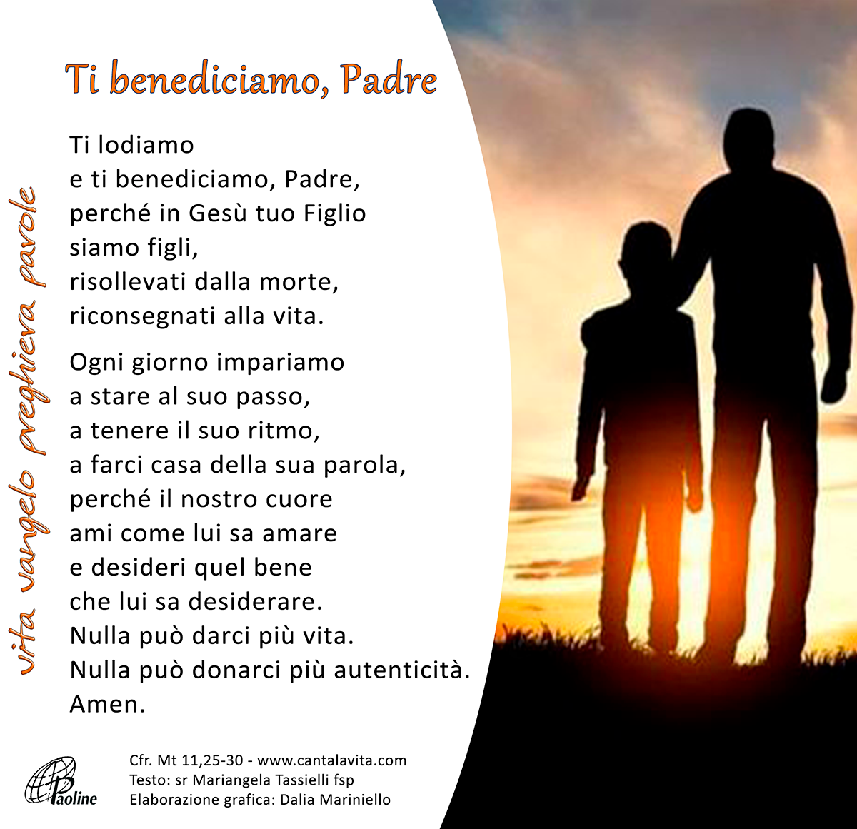 «Ti rendo lode, Padre, Signore del cielo e della terra, perché hai nascosto queste cose ai sapienti e ai dotti e le hai rivelate ai piccoli. Sì, o Padre, perché così hai deciso nella tua benevolenza. Tutto è stato dato a me dal Padre mio; nessuno conosce il Figlio se non il Padre, e nessuno conosce il Padre se non il Figlio e colui al quale il Figlio vorrà rivelarlo.