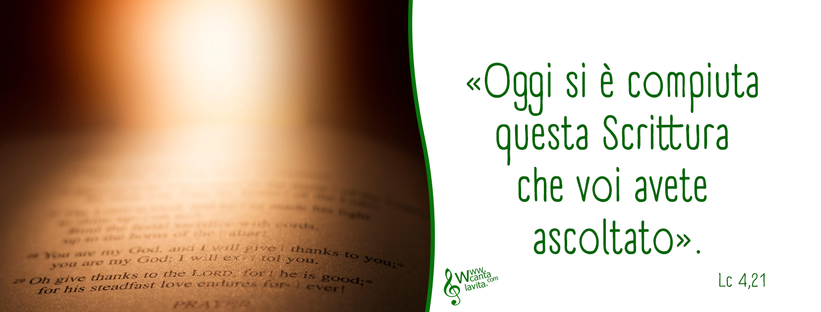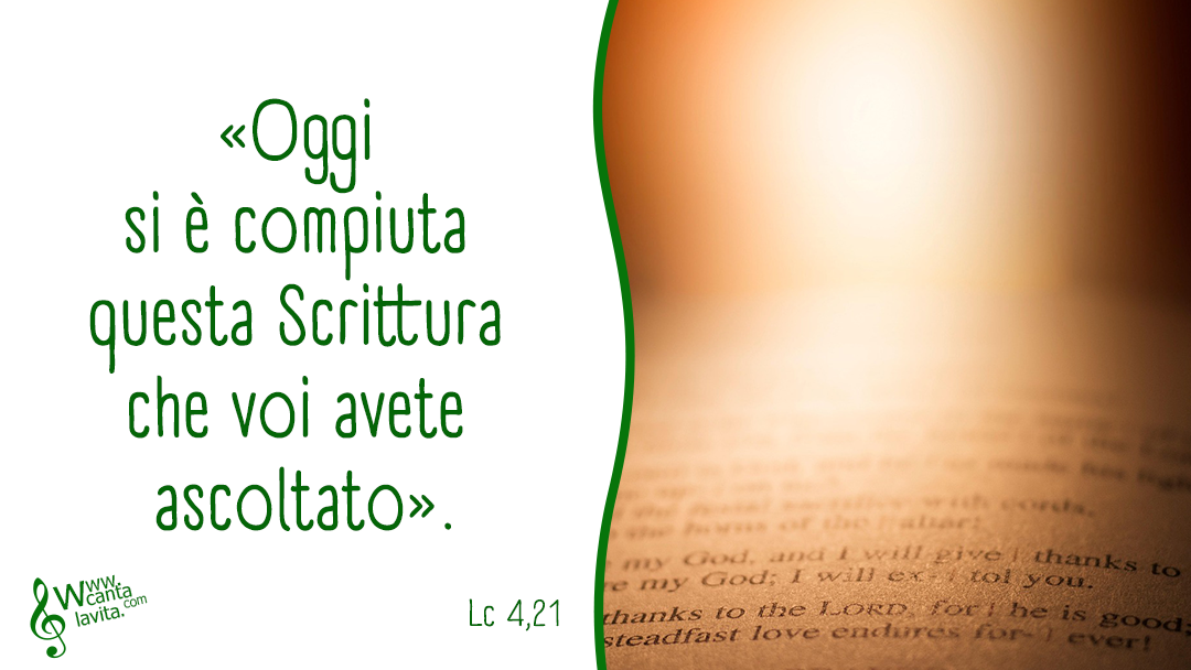 Riavvolse il rotolo, lo riconsegnò all’inserviente e sedette. Nella sinagoga, gli occhi di tutti erano fissi su di lui. Allora cominciò a dire loro: «Oggi si è compiuta questa Scrittura che voi avete ascoltato».