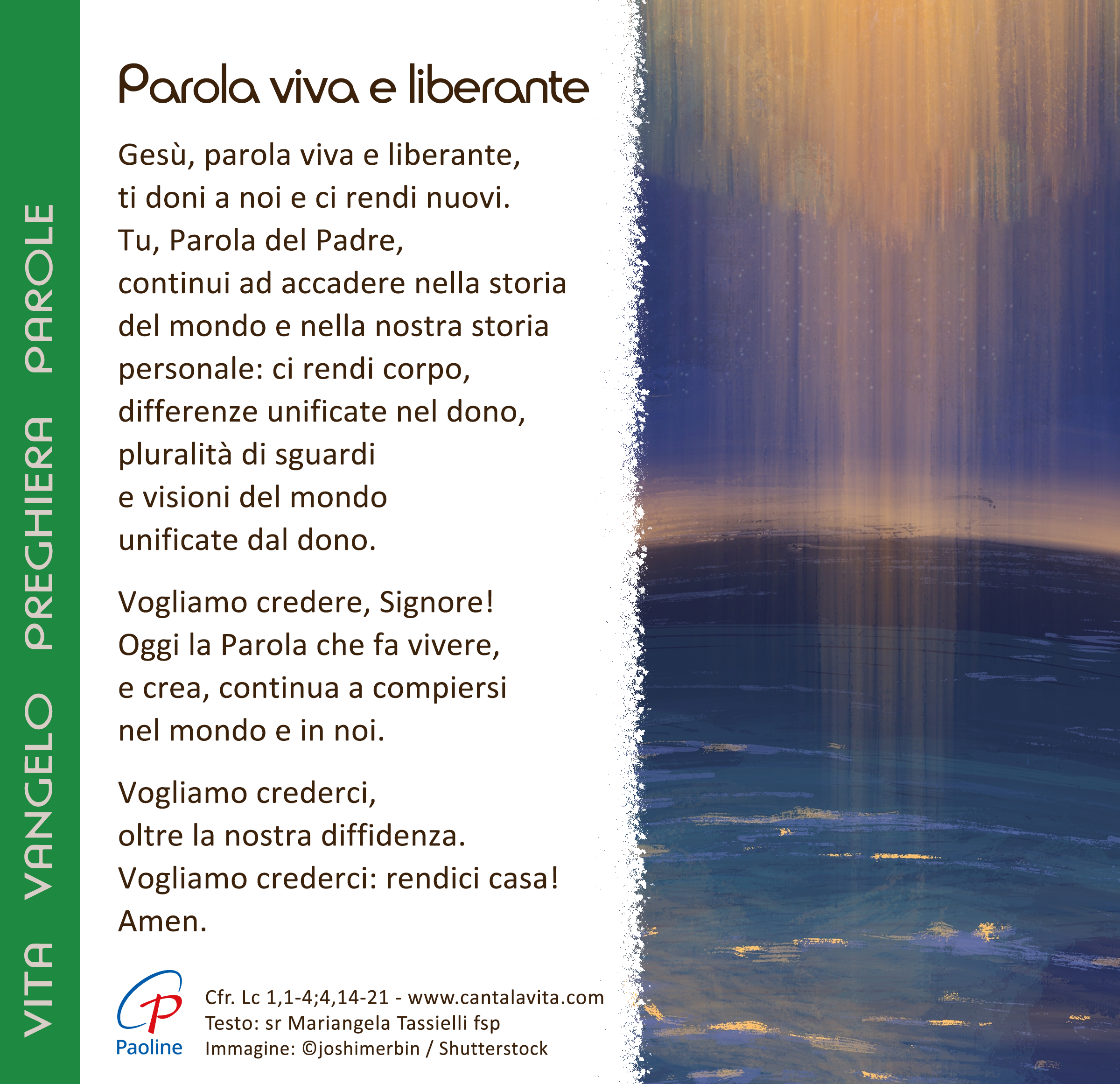 Che questa Parola viva, liberante, che è Gesù Cristo, ci trovi pronti a esserne casa, discepoli, ministri, testimoni.