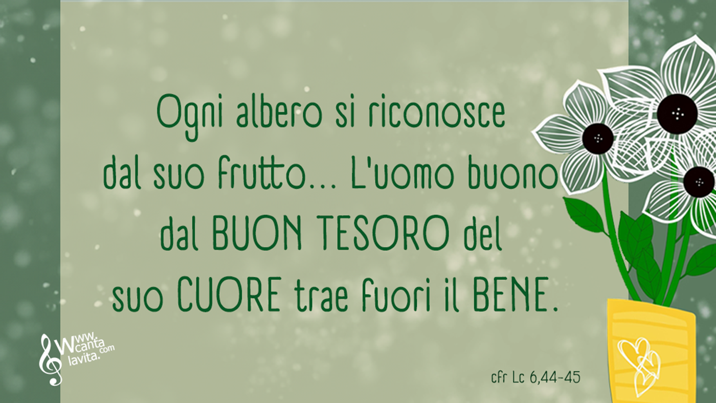 Non vi è albero buono che produca un frutto cattivo, né vi è d’altronde albero cattivo che produca un frutto buono. Ogni albero infatti si riconosce dal suo frutto: non si raccolgono fichi dagli spini, né si vendemmia uva da un rovo. L’uomo buono dal buon tesoro del suo cuore trae fuori il bene; l’uomo cattivo dal suo cattivo tesoro trae fuori il male: la sua bocca infatti esprime ciò che dal cuore sovrabbonda».