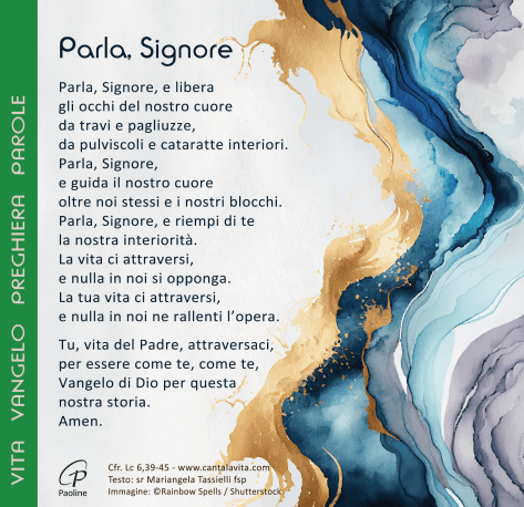 Lasciamo che sia la Parola a liberare i nostri occhi, a essere il tesoro che permette alla vita di attraversarci e renderci alberi buoni, che danno frutti buoni.