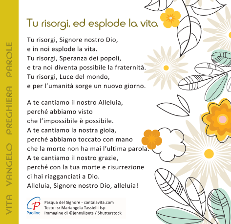 Tu risorgi, Signore nostro Dio, e in noi esplode la vita.