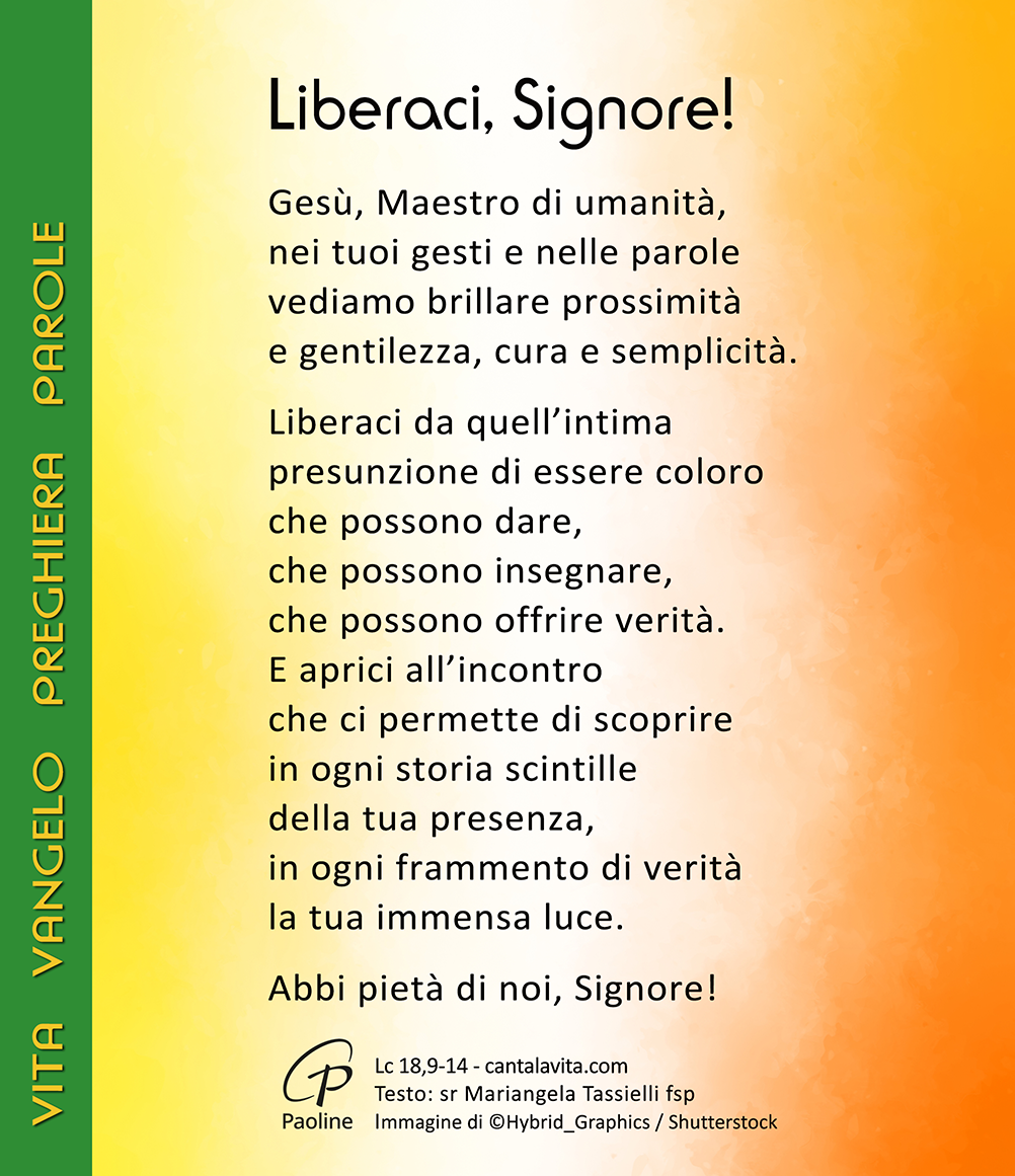 Io vi dico: questi, a differenza dell’altro, tornò a casa sua giustificato, perché chiunque si esalta sarà umiliato, chi invece si umilia sarà esaltato».