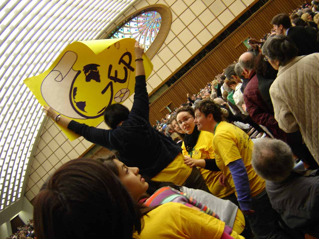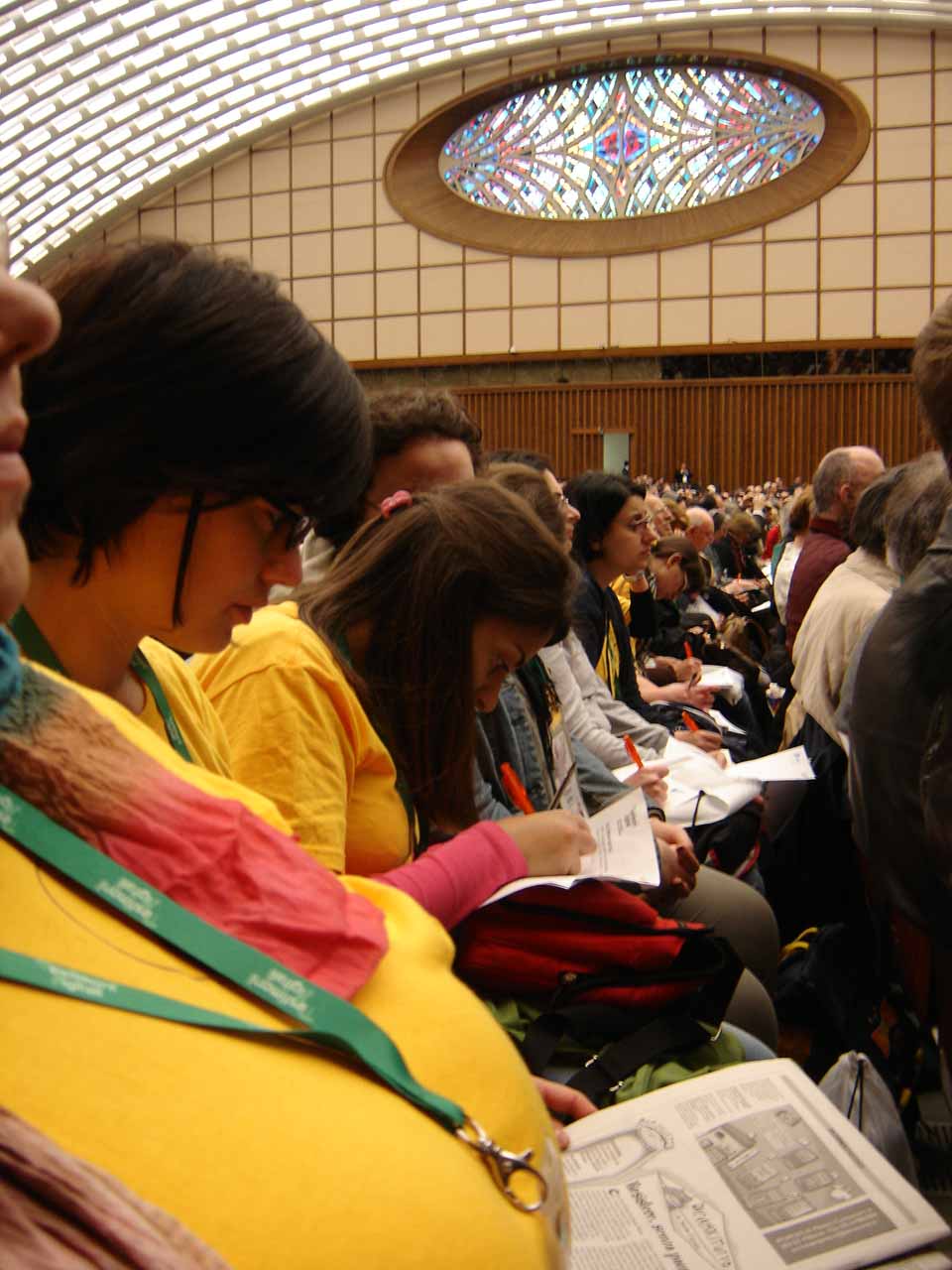 Ed eccoci all’alba di sabato 24: alle 5 tutti con zaino in spalla, emozionati e trepidanti pronti per la partenza per Roma alla volta del Convegno Nazionale ”Testimoni Digitali. Volti e linguaggi nell’era crossmediale”, iniziato giovedì 22 e terminato proprio sabato 24 nell’Aula Paolo VI con l’udienza del papa a cui abbiamo partecipato tutti noi con tanto di maglietta gialla e cartellone GEP, assieme a migliaia di pellegrini, circa 6.000,