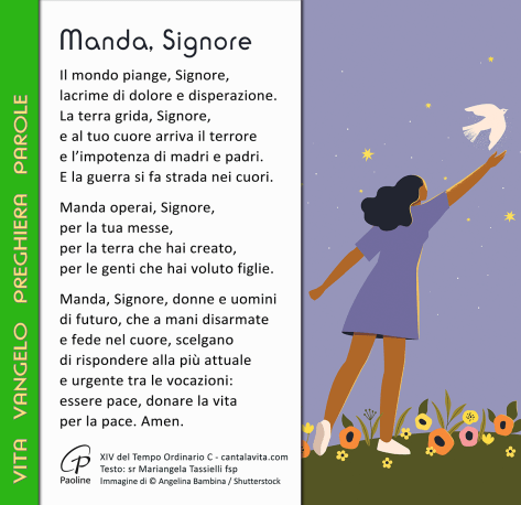 Manda, Signore, operai dal cuore nuovo, capaci di vie nuove, di doni nuovi, di orizzonti nuovi.