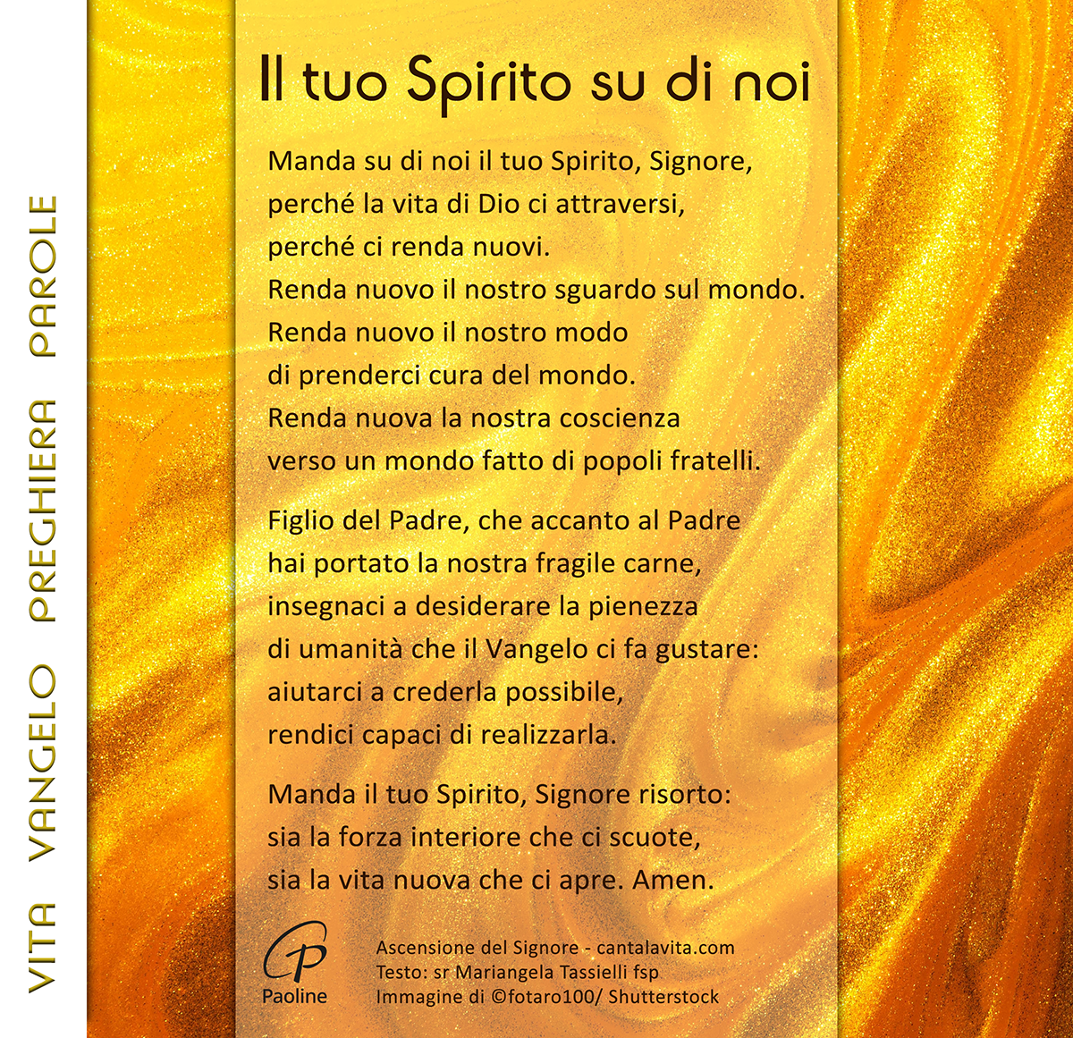 La Pentecoste accade così, e può accadere anche oggi, anche ora, in questo istante, anche in noi. Ed è un movimento da fuori a dentro, da dentro a dentro – nella nostra interiorità – ricostruendoci, e poi da dentro a fuori cambiando il nostro sguardo e la nostra presa sul mondo.