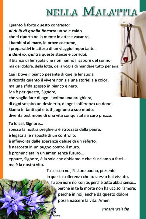 E’ una rubrica creata per proporre a tutti voi, amici della rete, una serie di foto-preghiere da condividere, donare ai vostri amici attraverso le bacheche dei social network che usate, o da pregare personalmente nelle varie situazioni che vi trovate a vivere.